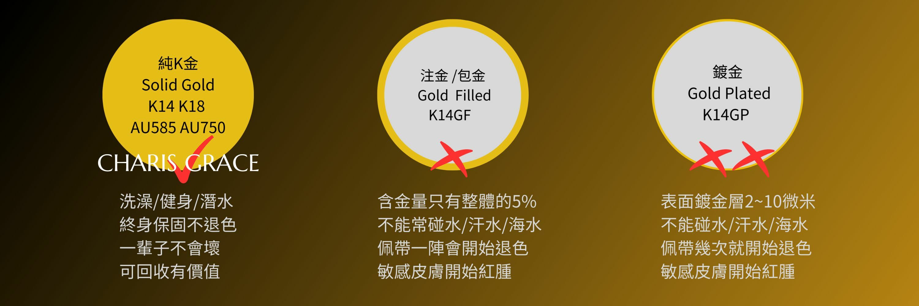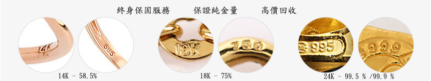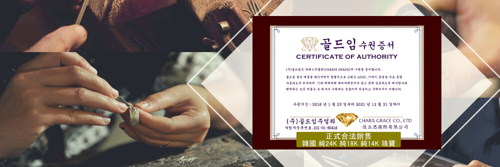 韓國設計製作。純14K 18K金,非鍍金非注金;洗澡,運動(汗水),潛水(海水),皆可佩戴,終身保固不退色。