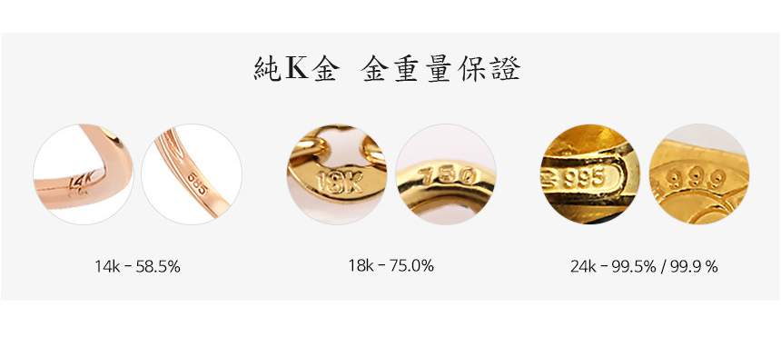 14K/18K 金含黃金的比例高達58.5%,75%,