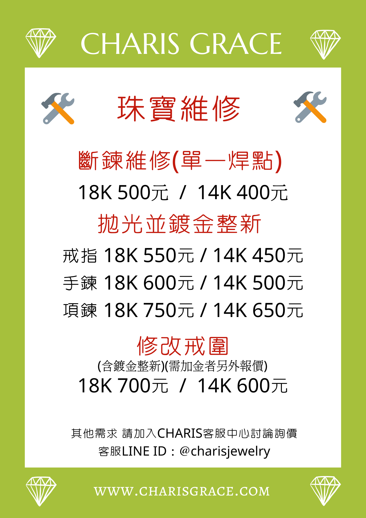 韓國設計製作。純14K 18K金,非鍍金非注金;洗澡,運動(汗水),潛水(海水),皆可佩戴,終身保固不退色。
